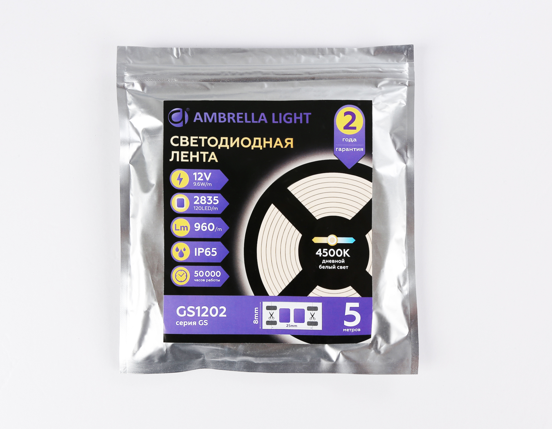 Светодиодная лента LED STRIP 12V 4500K 96 Вт/м 5м Ambrella light GS1202
