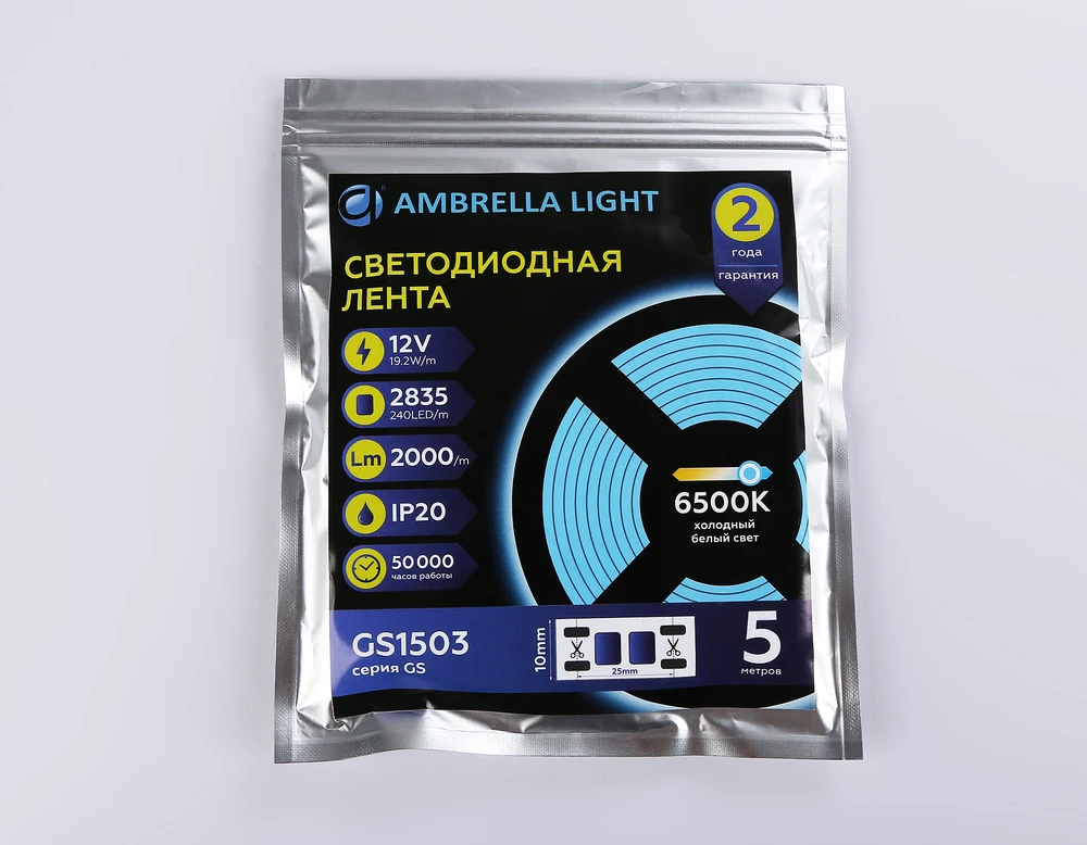 Светодиодная лента LED STRIP 12V 6500K 24 Вт/м 5м Ambrella light GS1703