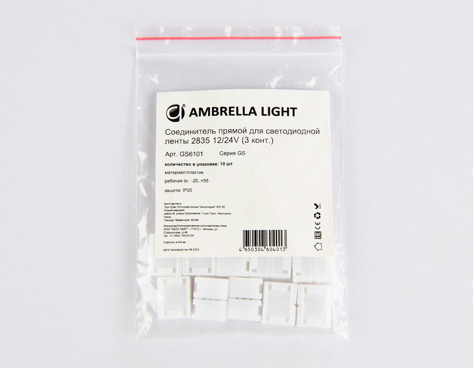 Комплект прямых соединителей (10шт) для светодиодной ленты 2835 Ambrella light LED STRIP GS6101