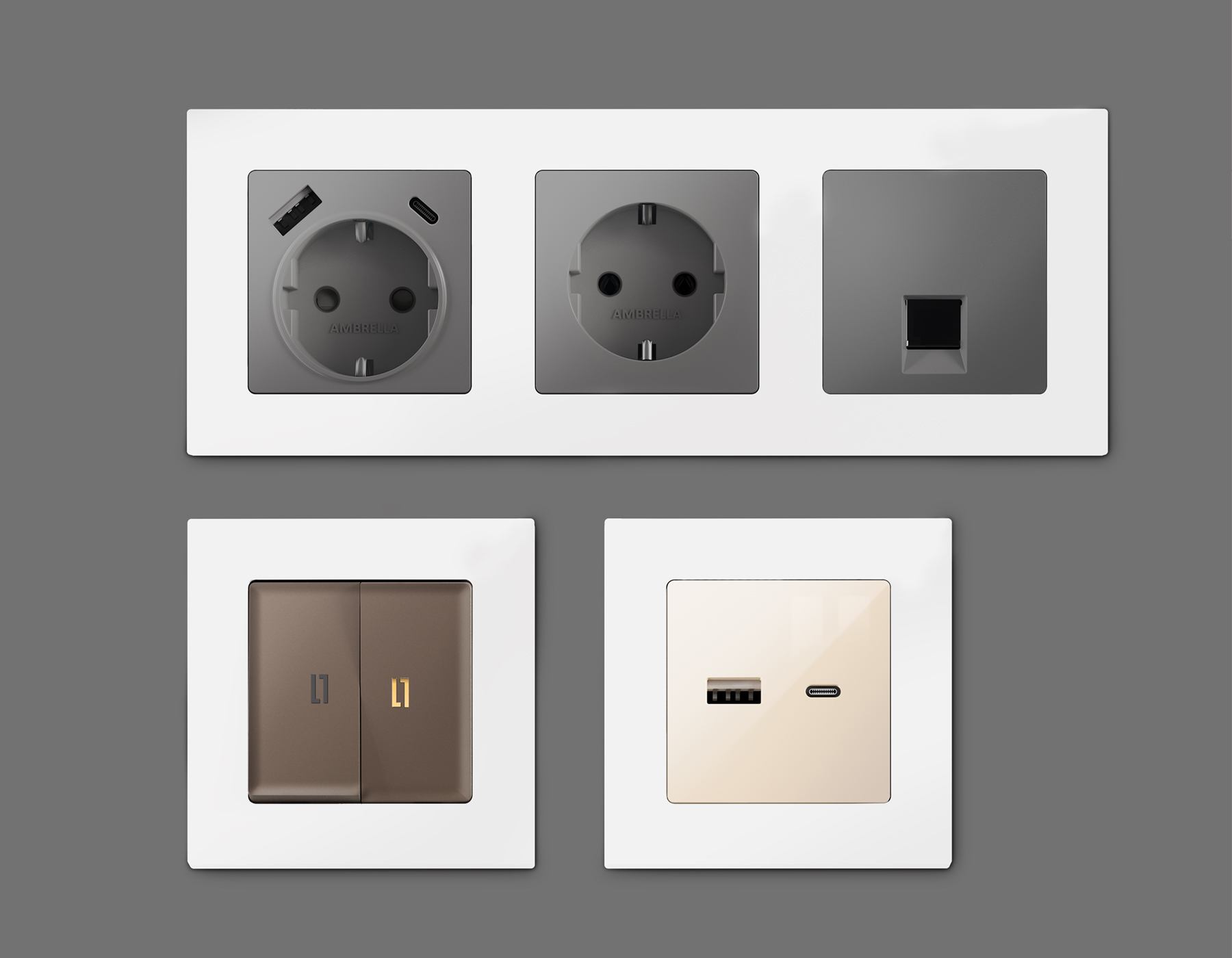 Рамка на 4 поста Ambrella Volt TECHNO AF220634