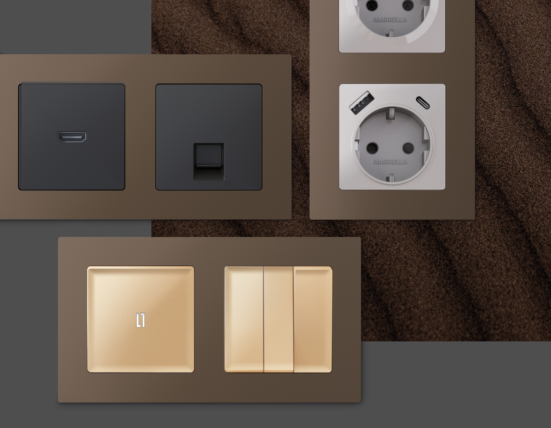 Рамка на 4 поста Ambrella Volt TECHNO AF220654