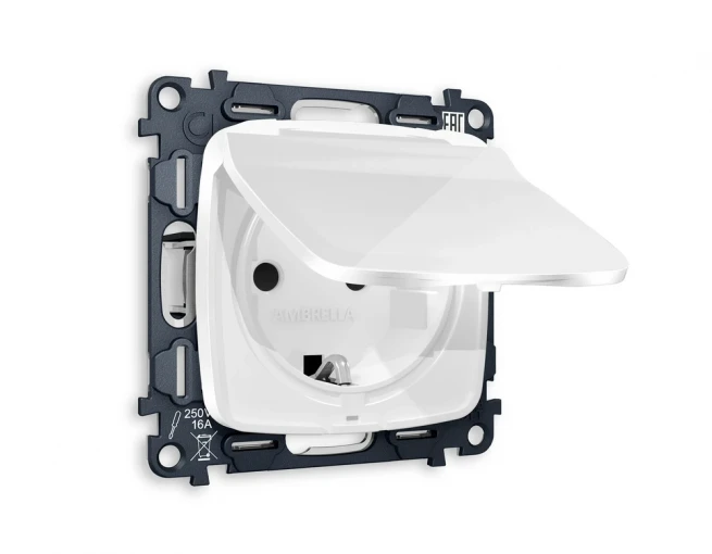 Розетка с/з со шторками и крышкой IP44 Ambrella Volt OMEGA MO108010