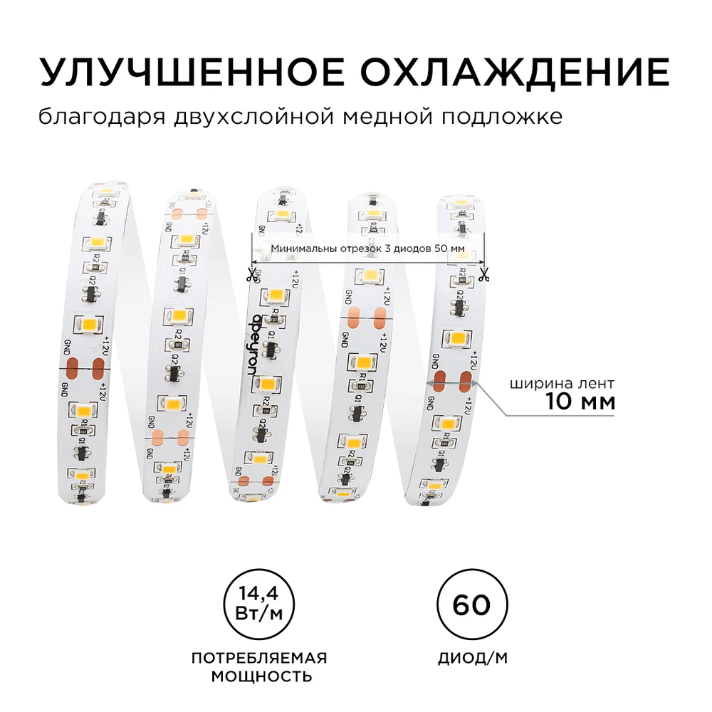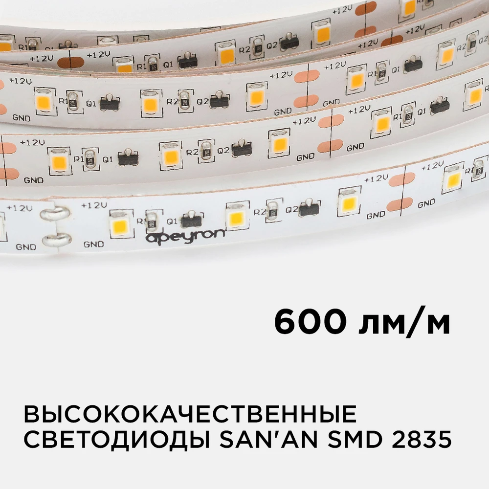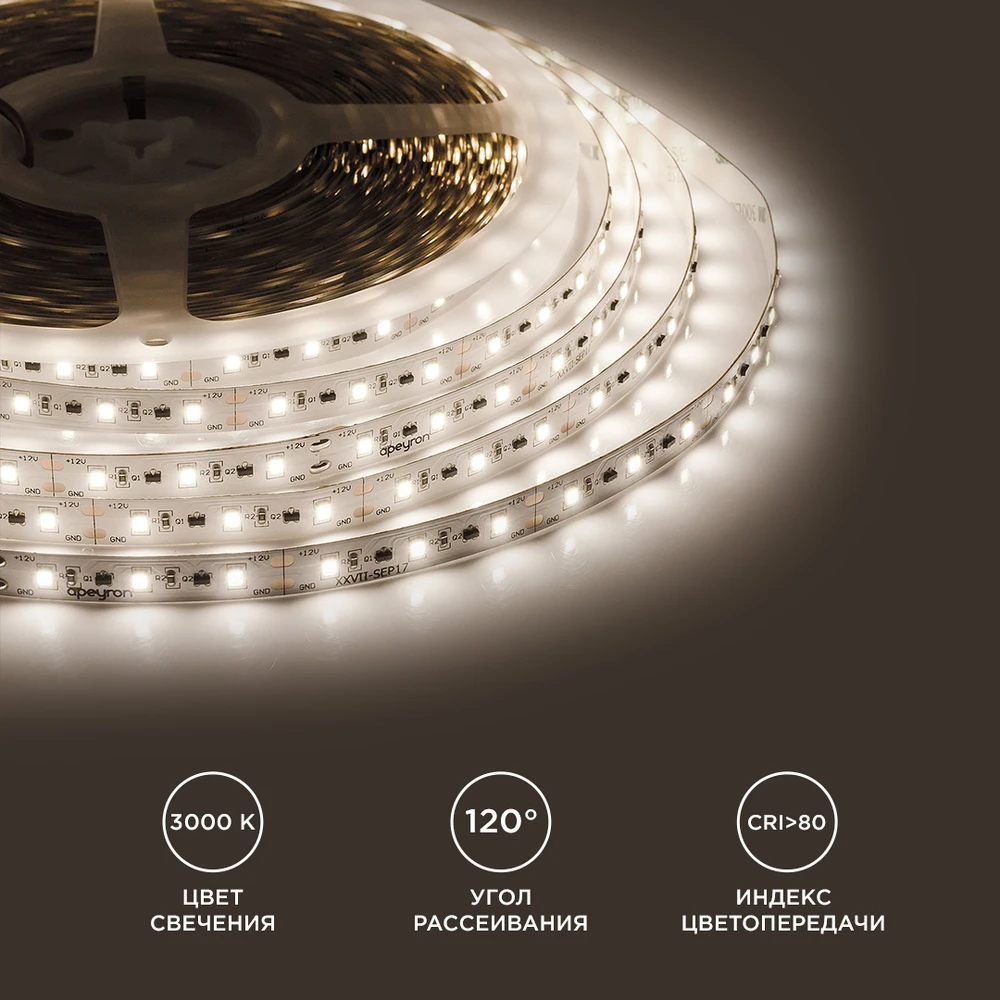 Светодиодная лента 12V 3000K 14,4W/m 20м Apeyron 00-115