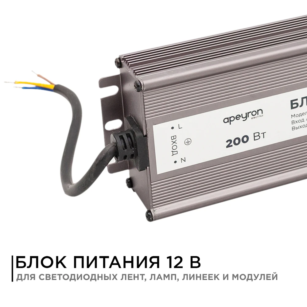 Блок питания 12V 200W 16,7A Apeyron 03-107