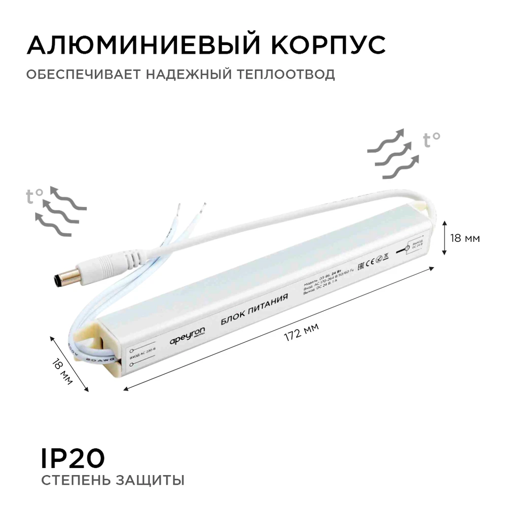 Блок питания 24V 24W 1A Apeyron 03-96