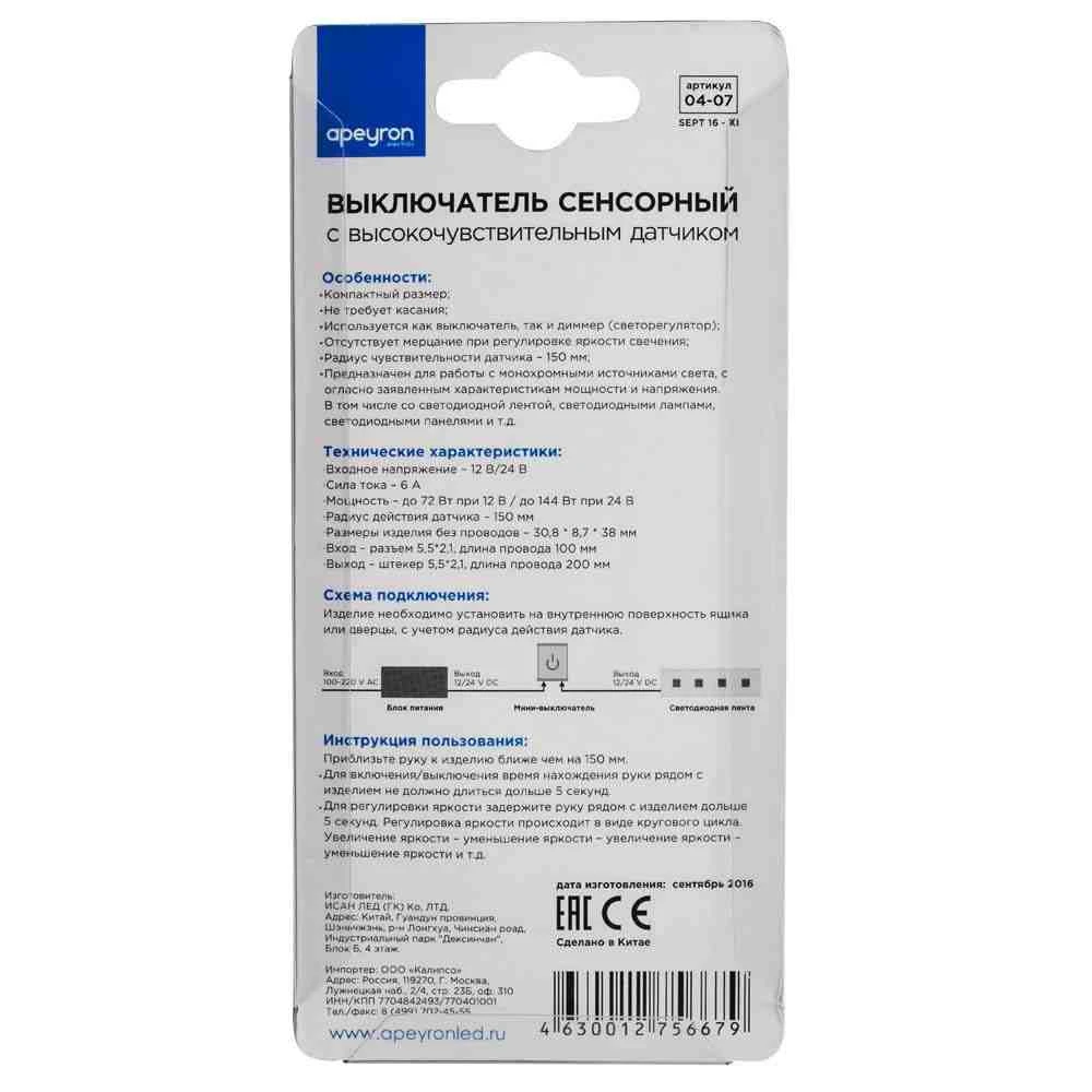 Выключатель сенсорный Apeyron 04-07
