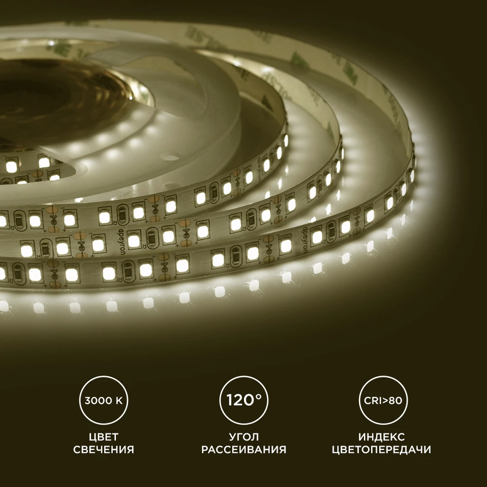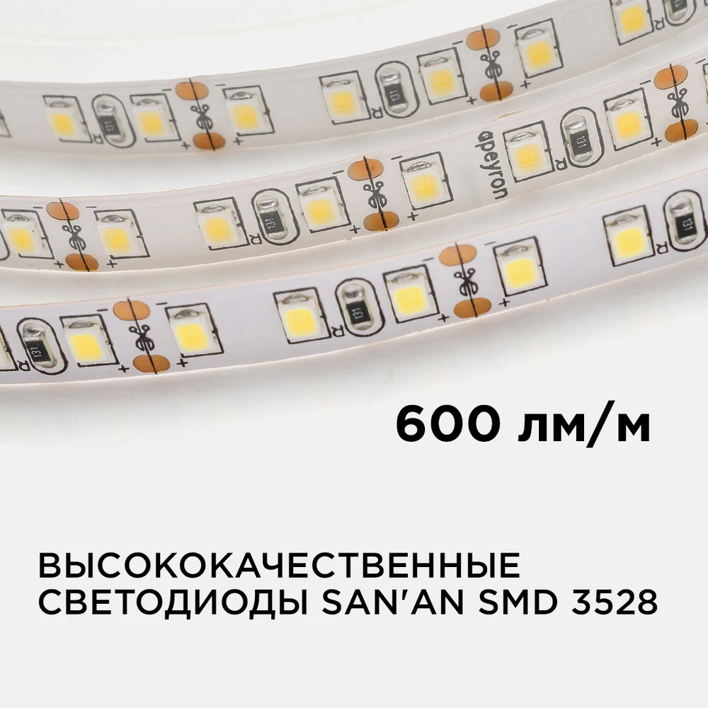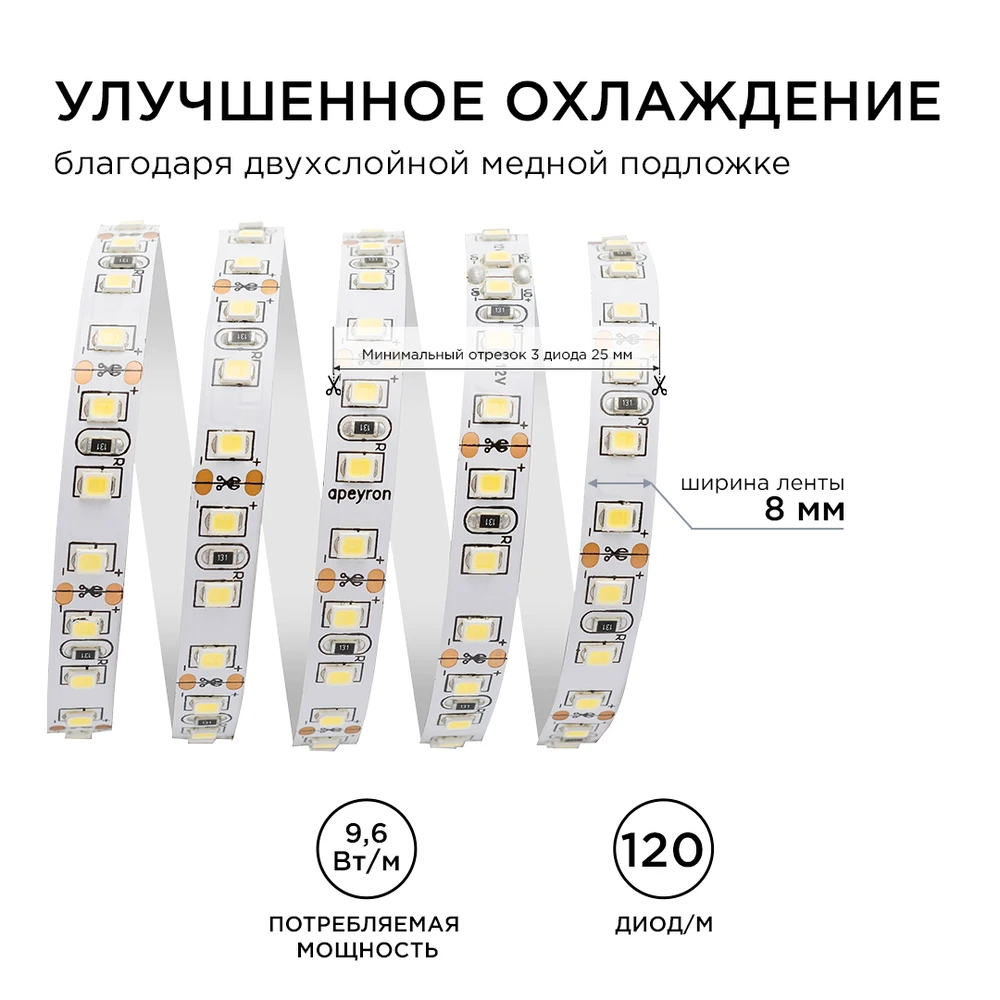 Светодиодная лента 12V 3000K 9,6W/m 5м Apeyron 32BL