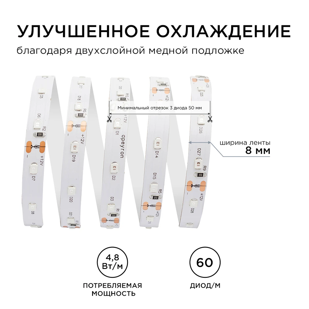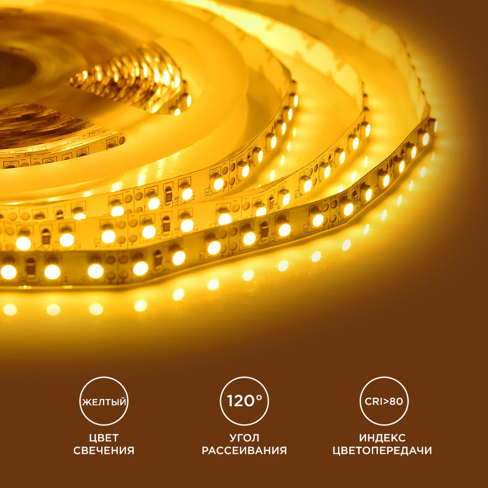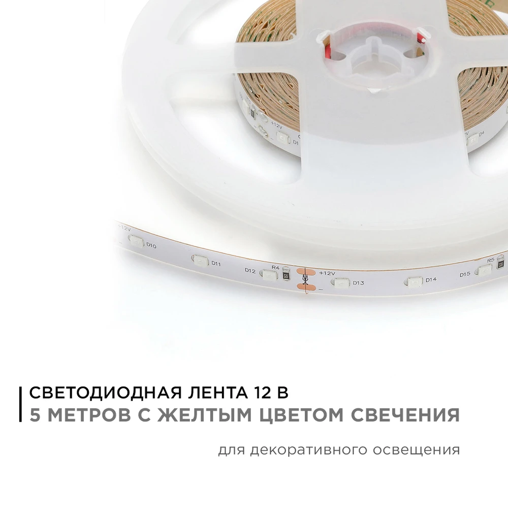 Светодиодная лента 12V Жёлтый 4,8W/m 5м Apeyron 33BL