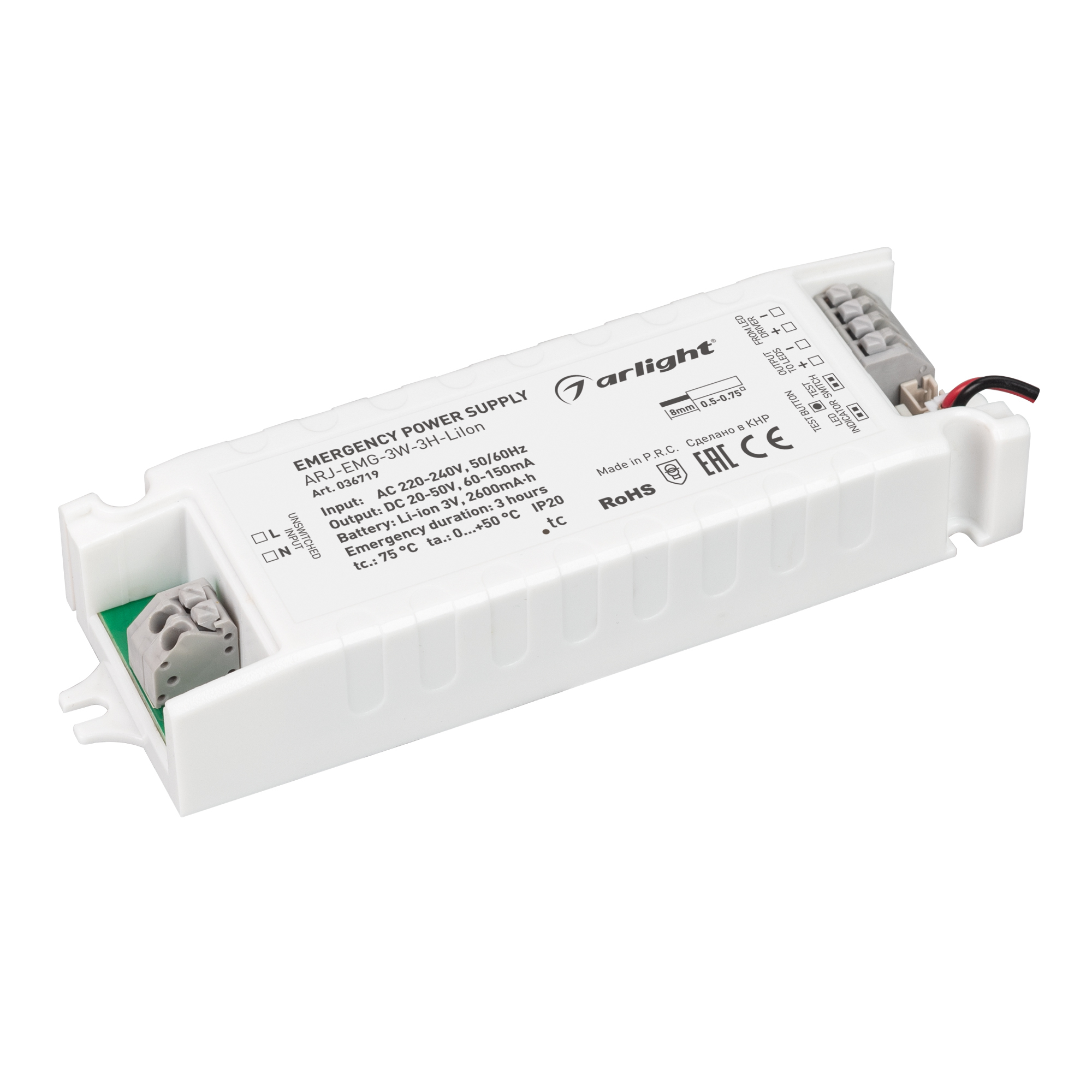 Блок аварйиного питания ARJ-EMG-3W-3H-LiIon 0,06-0,15A 20-50V 3W Arlight 036719