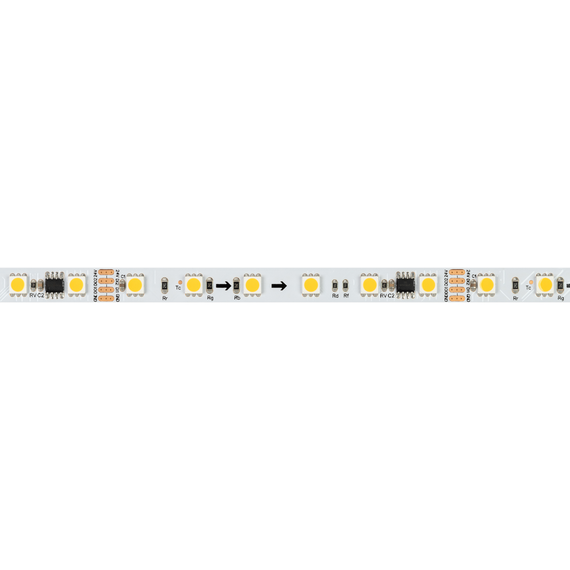 Светодиодная лента 24V 3000К RGB 16W/m 5m Arlight 40620