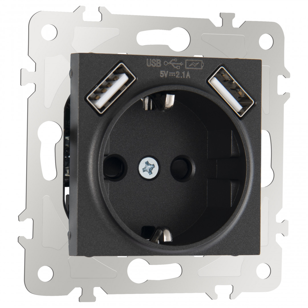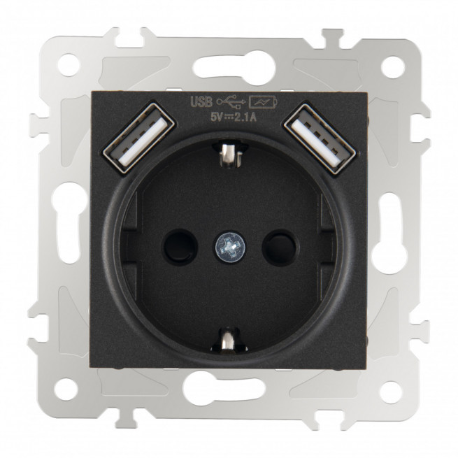 Розетка с/з со шторками + USB Arte Milano 203.47-1.black