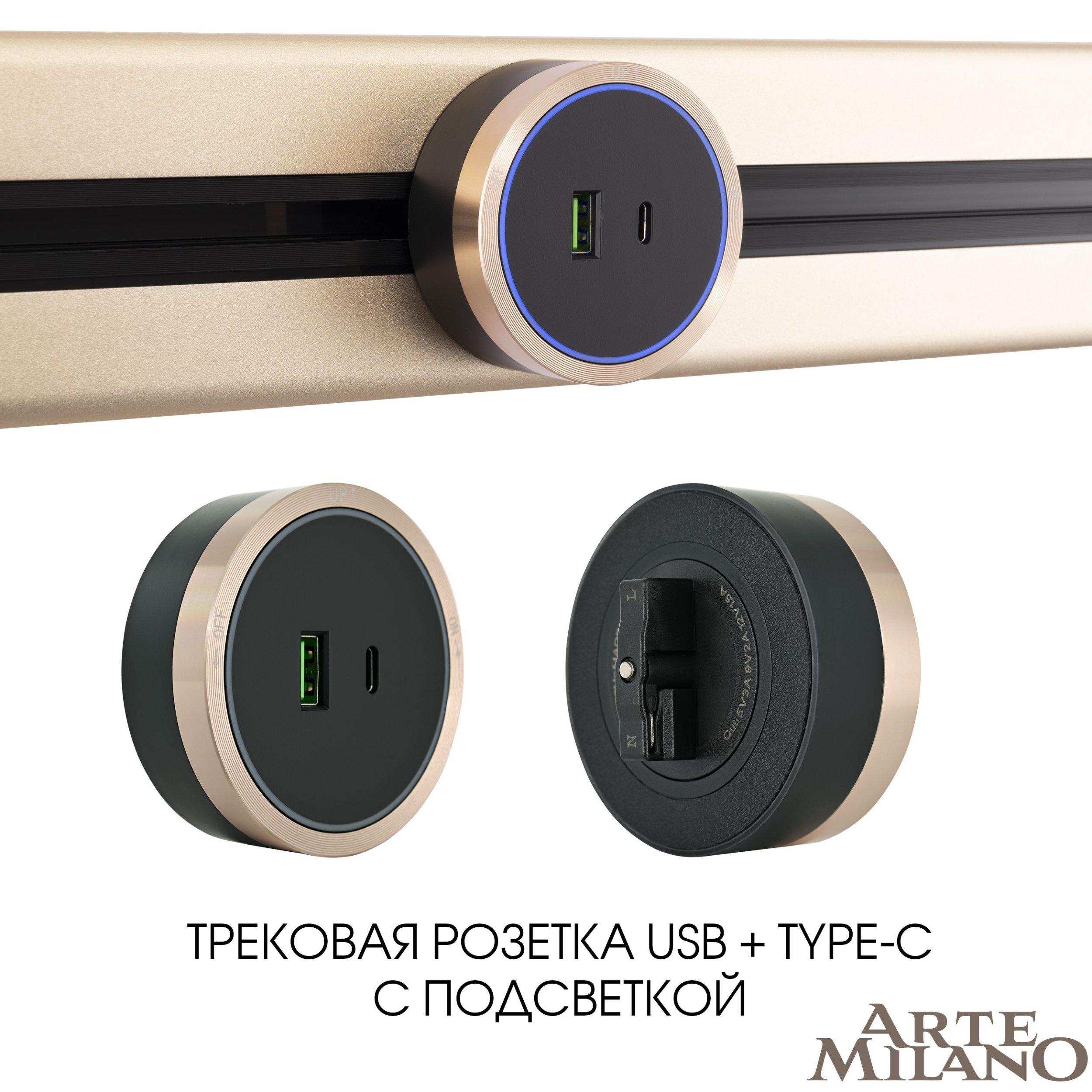 Розетка USB трековая Arte Milano 380066TS LED/USB-Type-C Gold