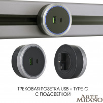 Розетка USB трековая Arte Milano 380066TS LED/USB-Type-C Grey