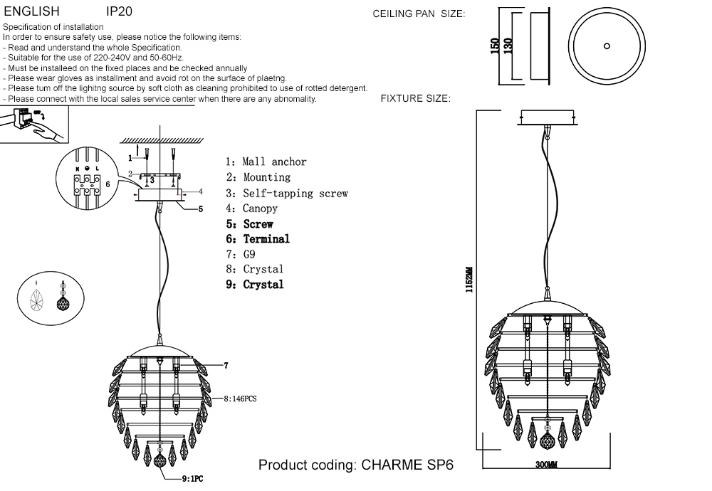 Подвесной светильник Crystal Lux CHARME CHARME SP6 CHROME/TRANSPARENT