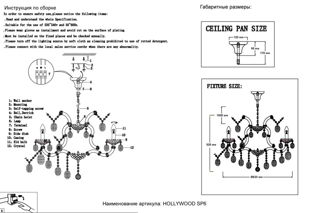 Подвесная люстра Crystal Lux HOLLYWOOD HOLLYWOOD SP6 CHROME