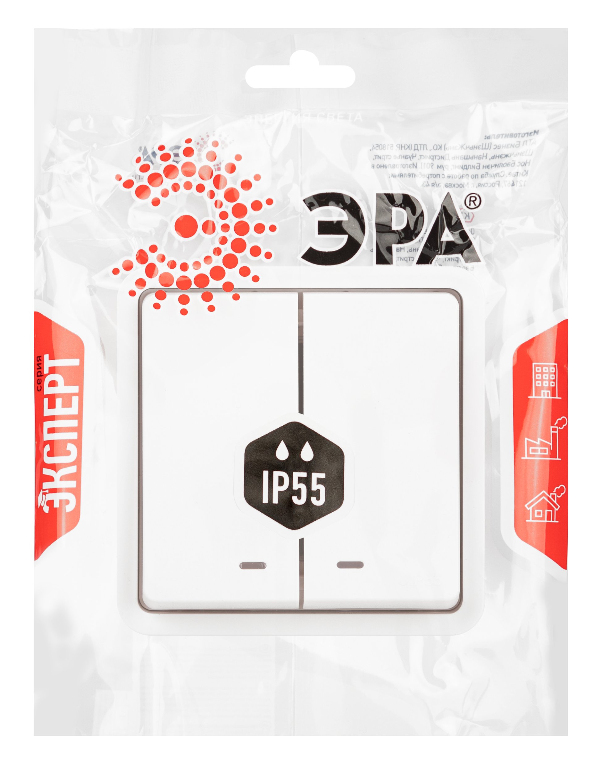 Выключатель двухклавишный с подсветкой Эра 11-1525-01 Б0063304
