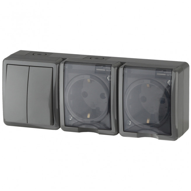 Блок двух розеток с выключателем двухклавишным IP54 Эра ЭКСПЕРТ 11-7404-03 Б0027676