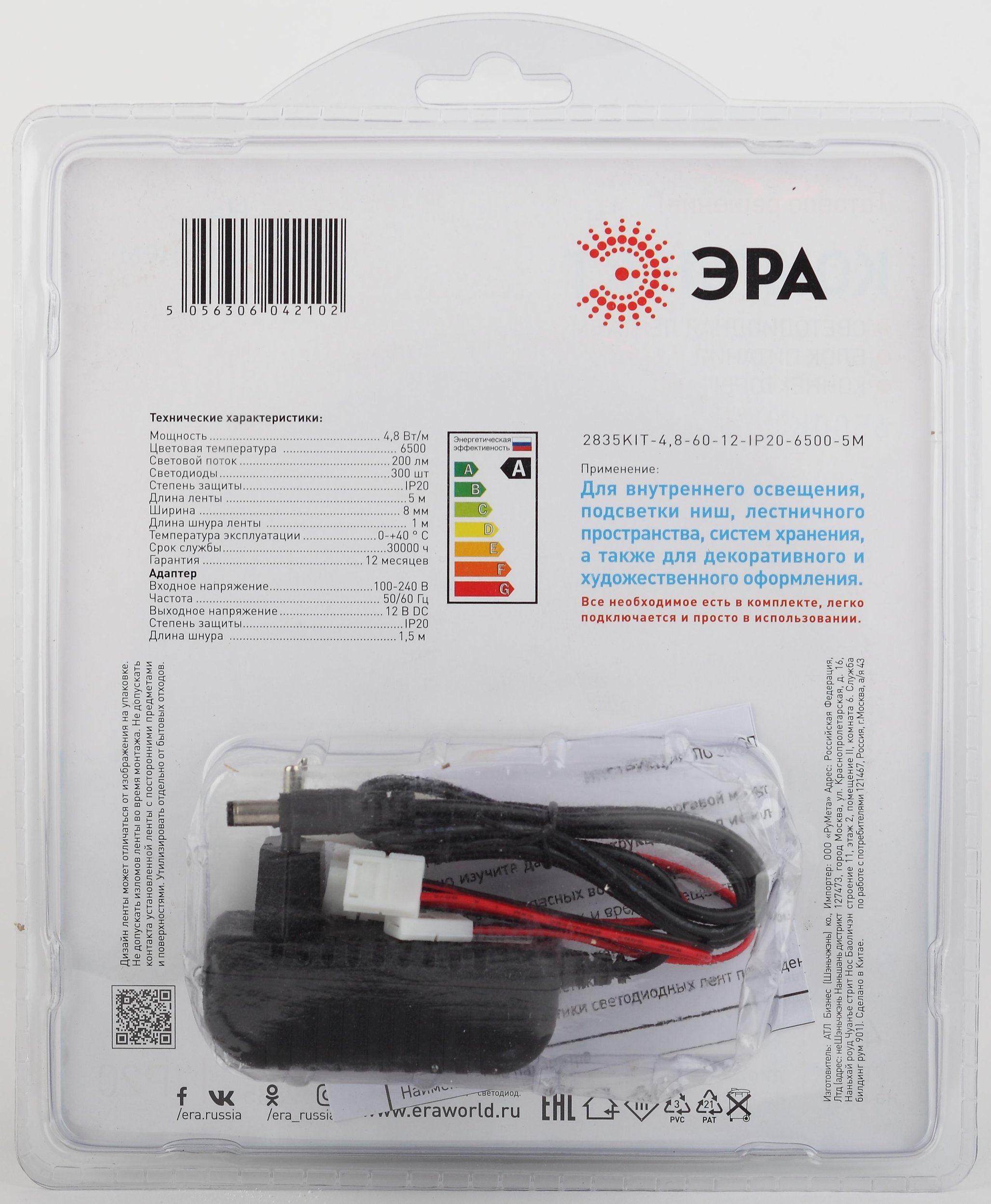 Артикул | 2835kit-4,8-60-12-IP20-6500-5m Б0043061