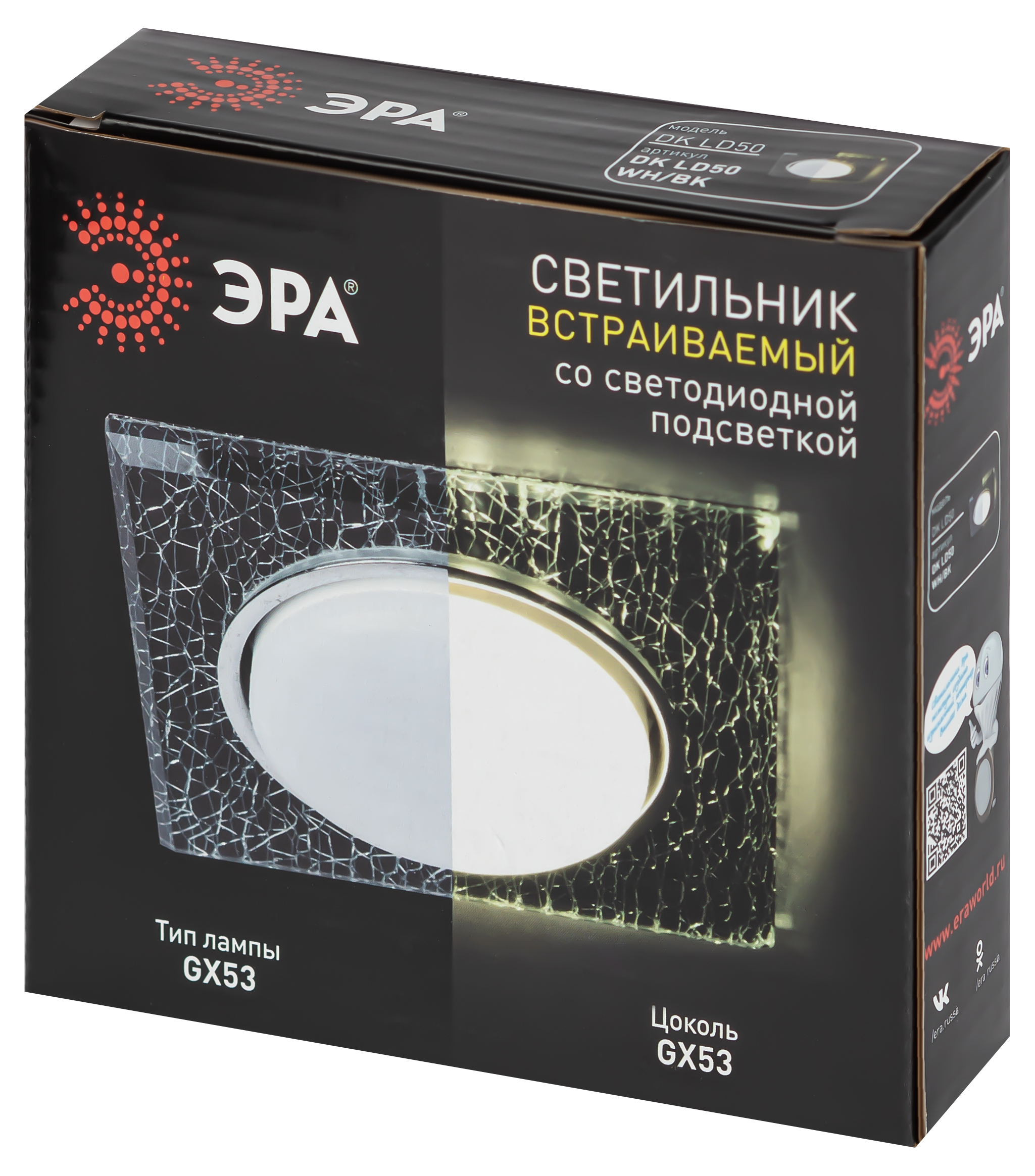 Точечный встраиваемый светильник Эра DK LD50 WH/BK Б0057469