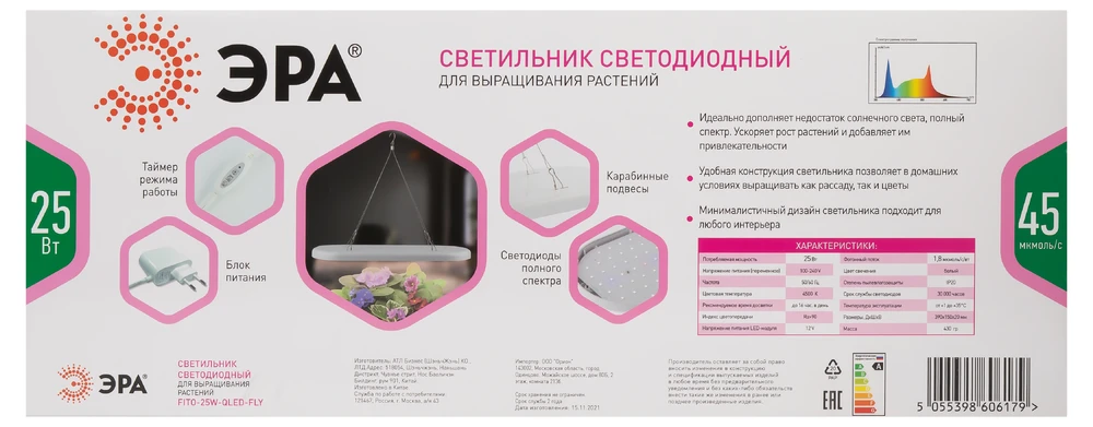 Светильник для растений Эра FITO-25W-QLED-FLY Б0053062