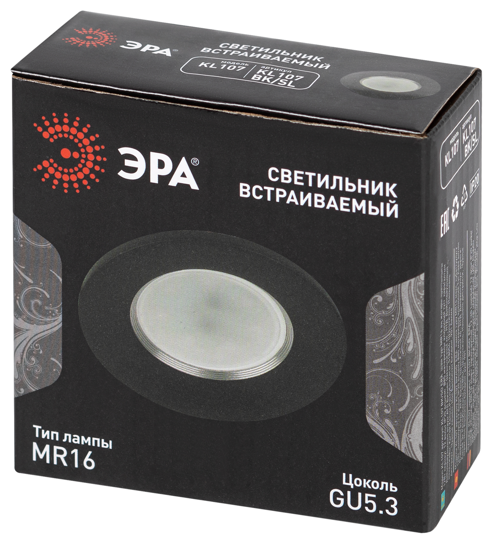 Точечный встраиваемый светильник Эра KL107 BK/SL Б0061098