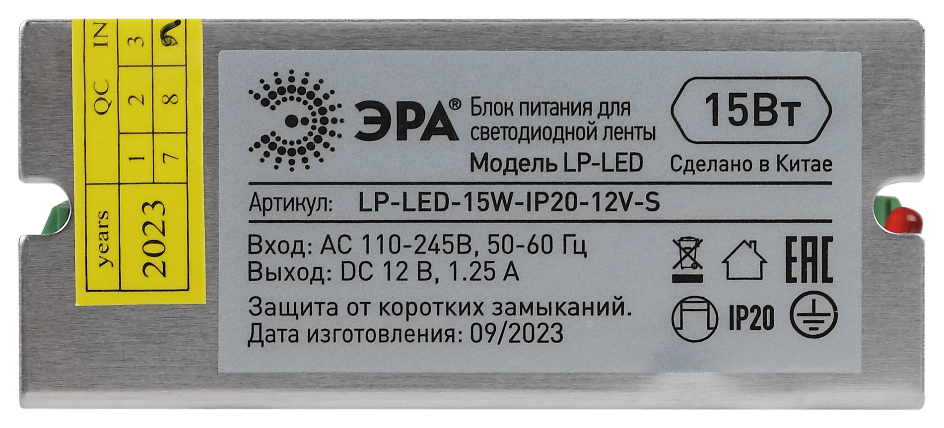Блок питания 12V 15W 1,25A Эра LP-LED-15W-IP20-12V-S Б0061118