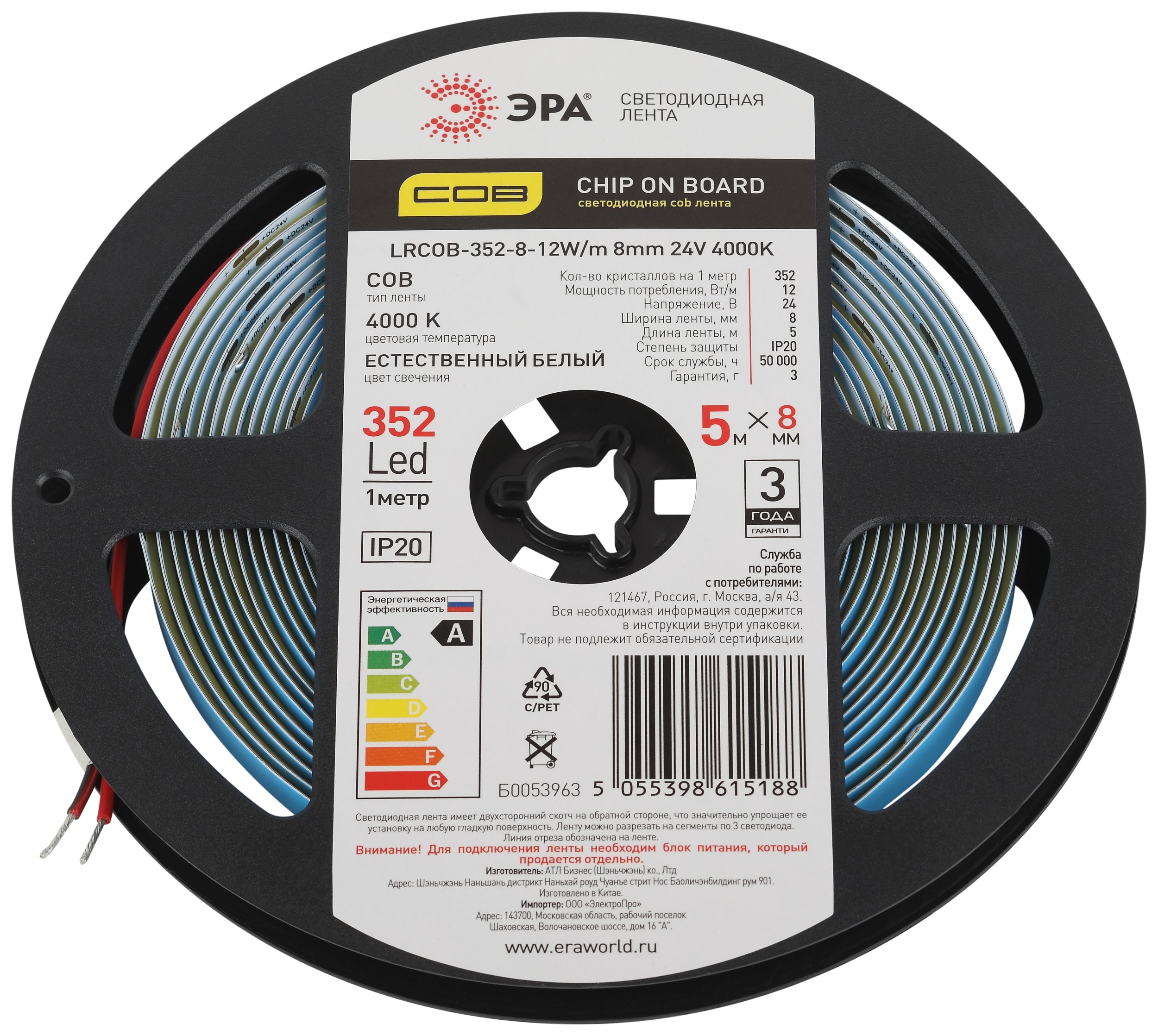 Артикул | LRCOB-352-8-12W/m 8mm 24V 4000K Б0053963