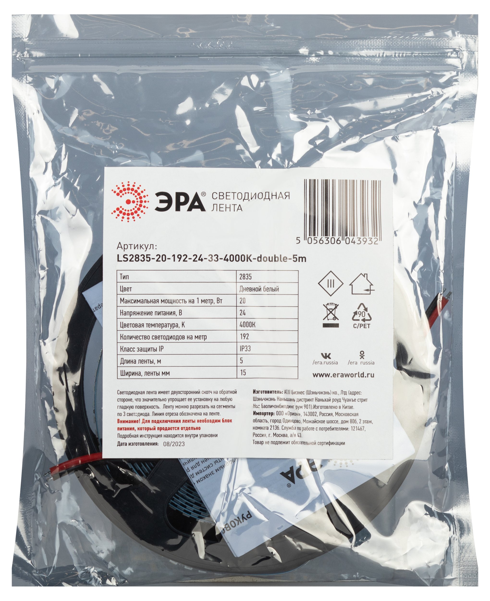 Артикул | LS2835-20-192-24-33-4000К-double-5m Б0043103