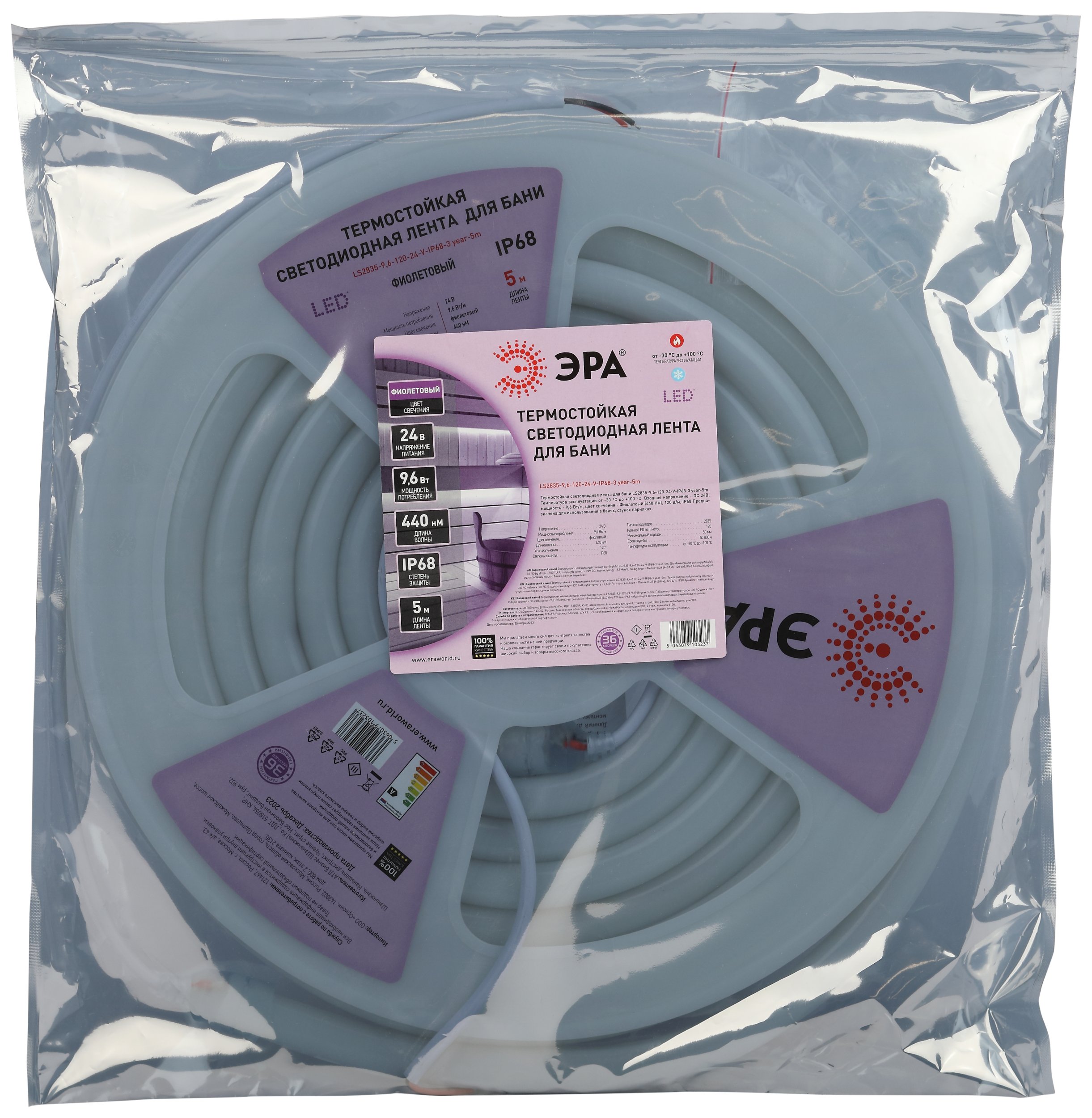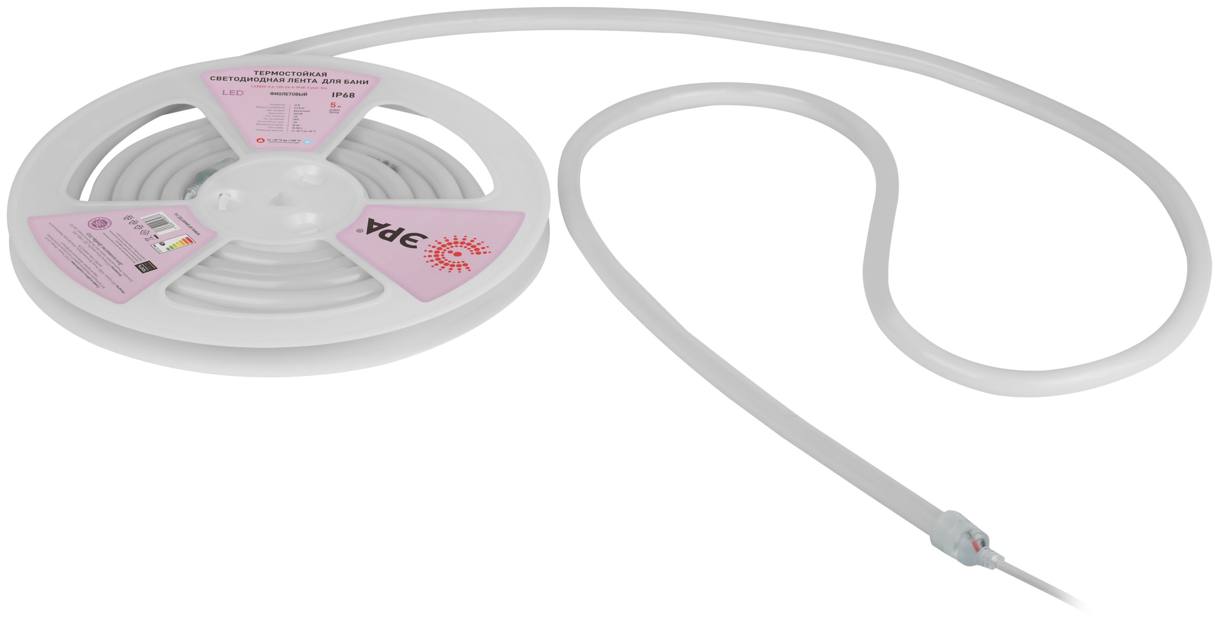 Светодиодная лента 24V Фиолетовый 9,6W/m 5м Эра LS2835-9,6-120-24-V-IP68-3 year-5m Б0062357