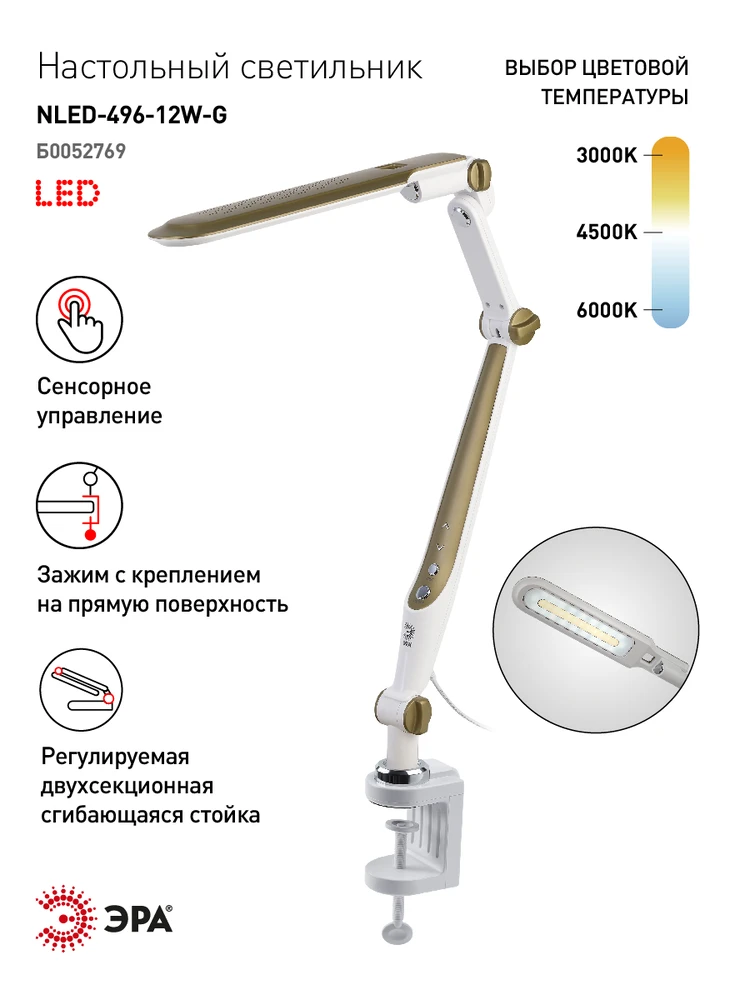 Офисная настольная лампа Эра NLED-496-12W-G Б0052769