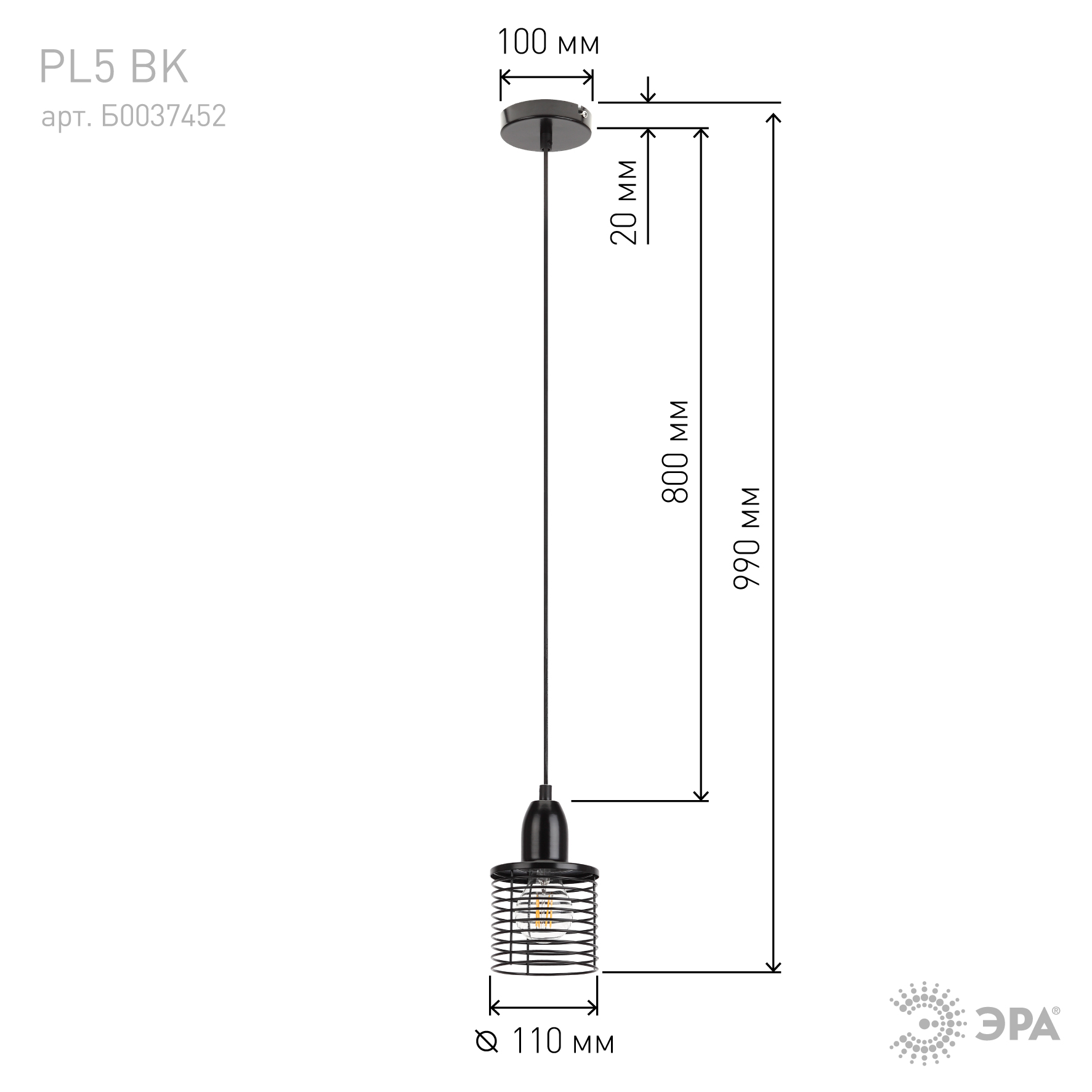 Подвесной светильник Эра PL5 BK Б0037452