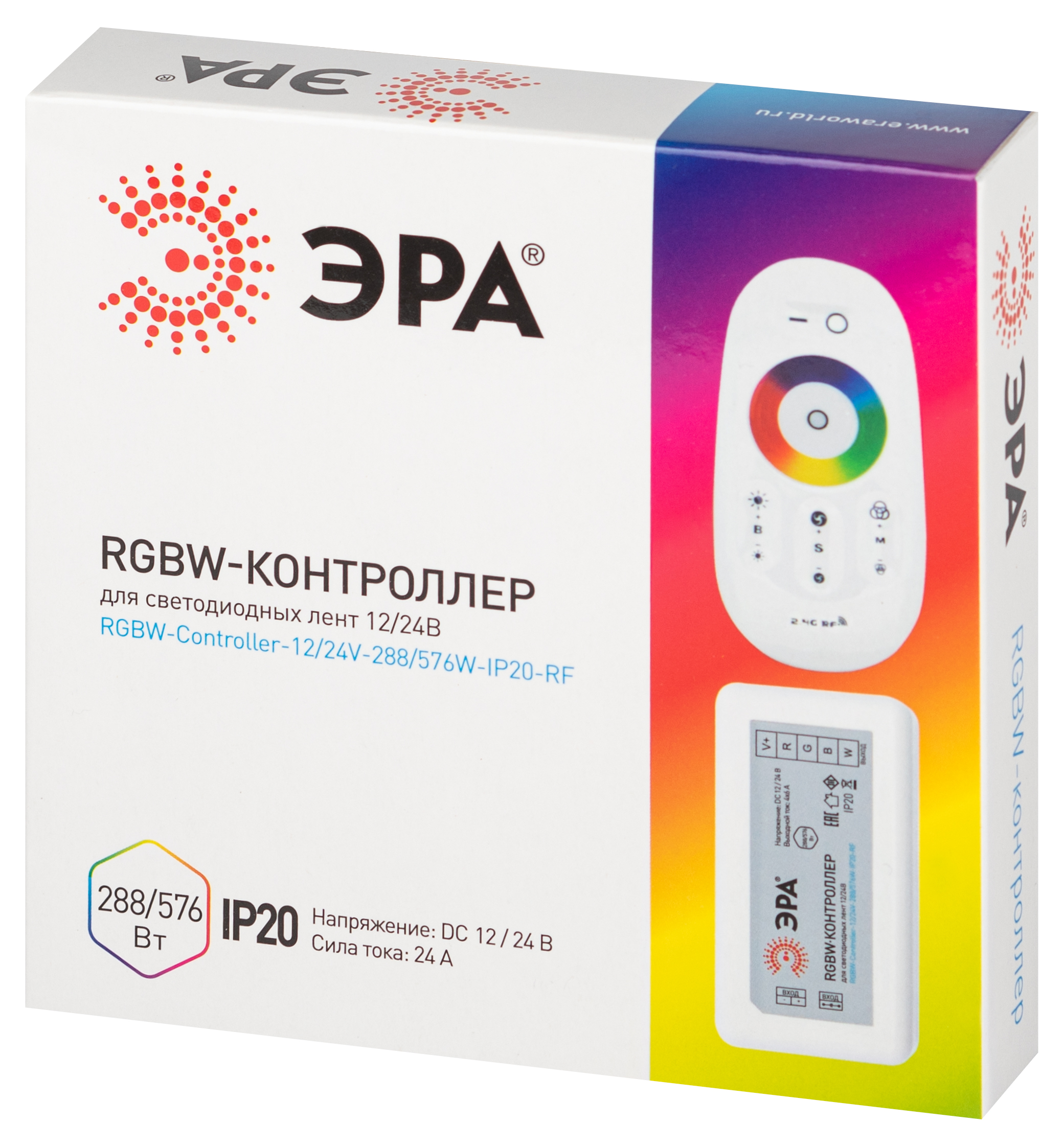 Контроллер с ПДУ для лент Эра RGBW-Controller-12/24V-288/576W-IP20-RF Б0061114