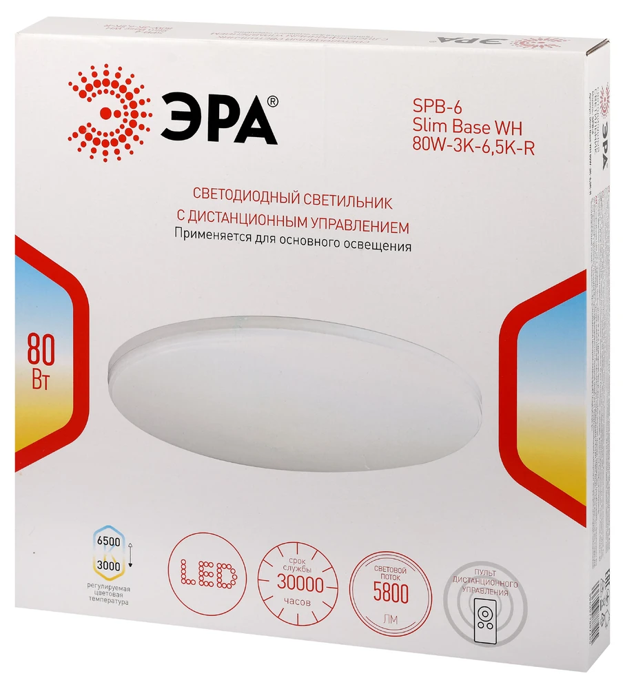Потолочный светильник Эра КЛАССИК С ДУ SPB-6 Slim Base WH 80W-3K-6,5K-R