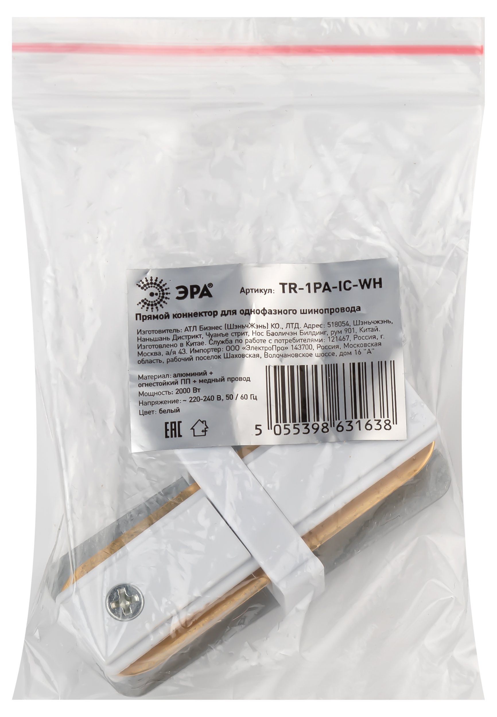 Коннектор прямой для шинопровода Эра TR-1PA-IC-WH Б0054463