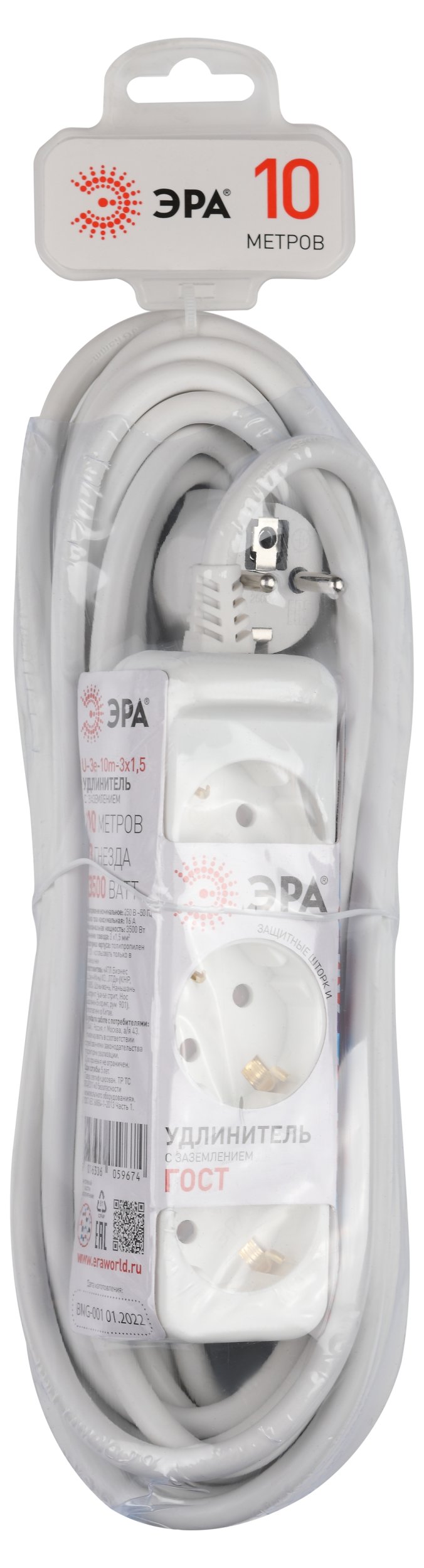 Удлинитель на 3 поста Эра U-3e-10m-3x1,5 Б0044035