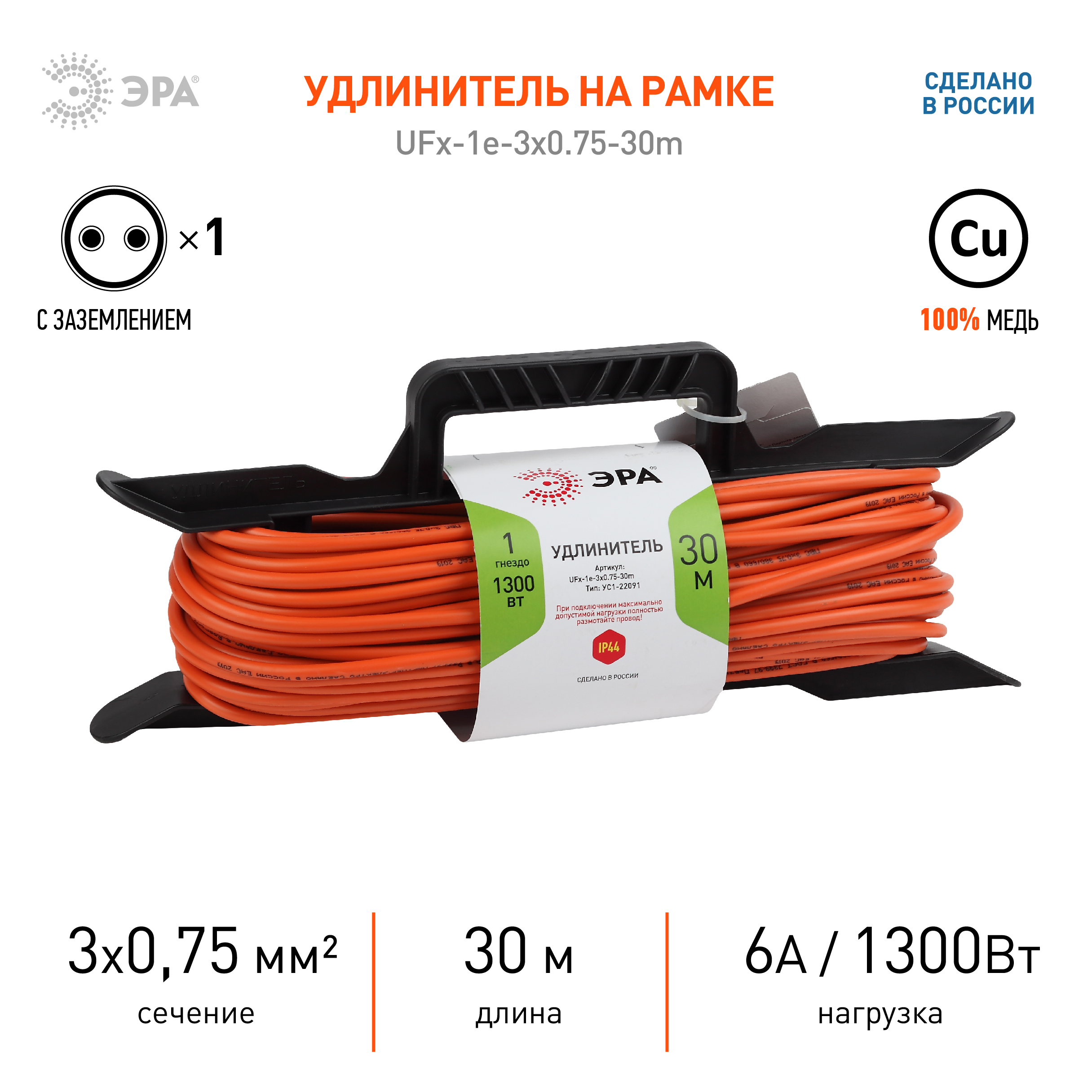 Удлинитель на 1 пост садовый Эра UFx-1-2x0.75-30m Б0046822