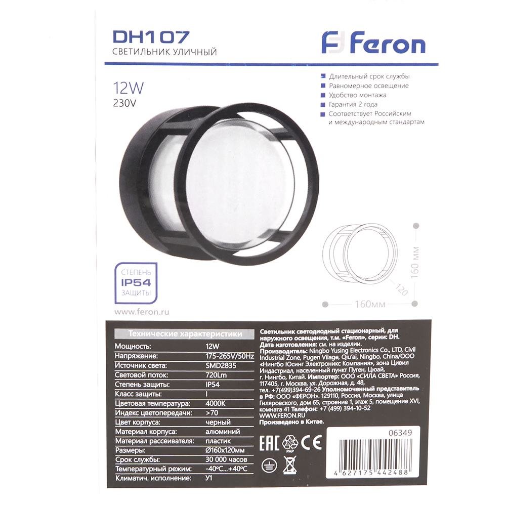 Уличный настенный светильник Feron 06349