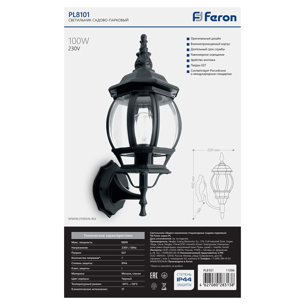Уличный настенный светильник Feron КЛАССИКА 11096