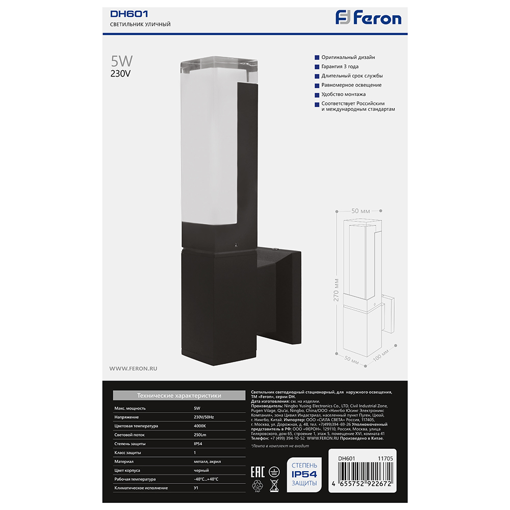 Уличный настенный светильник Feron DH601 11705