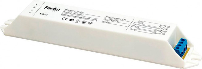 Аппарат пускорегулирующий электронный (балласт), 2*18W T8/G13 230V, EB52 Feron 21522