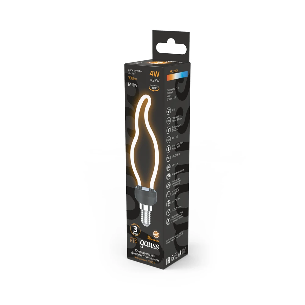 Светодиодная филаментная лампа Gauss G95 4W 330Lm 2700K E14 1000801104