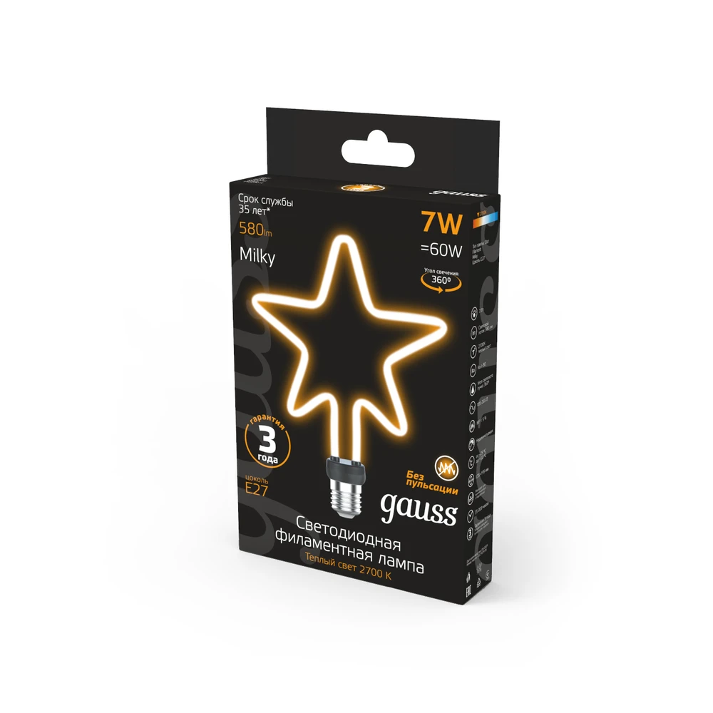 Светодиодная филаментная лампа Gauss G95 7W 580Lm 2700K E27 1006802104