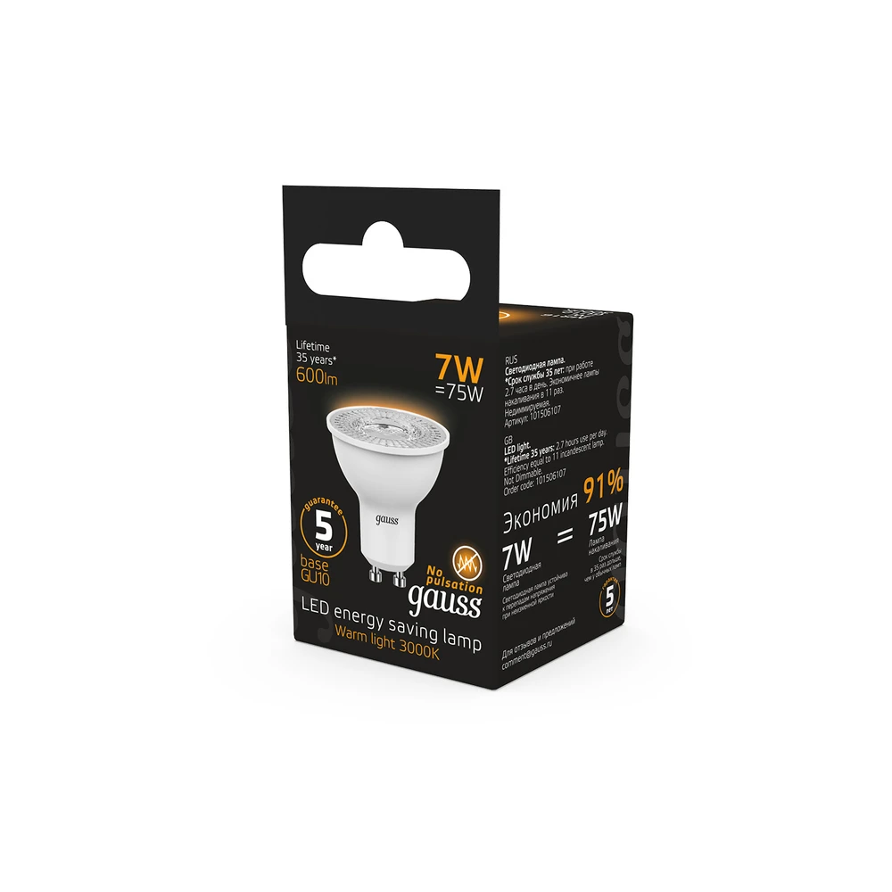 Светодиодная лампа Gauss Софит 7W 600Lm 3000K GU10 101506107