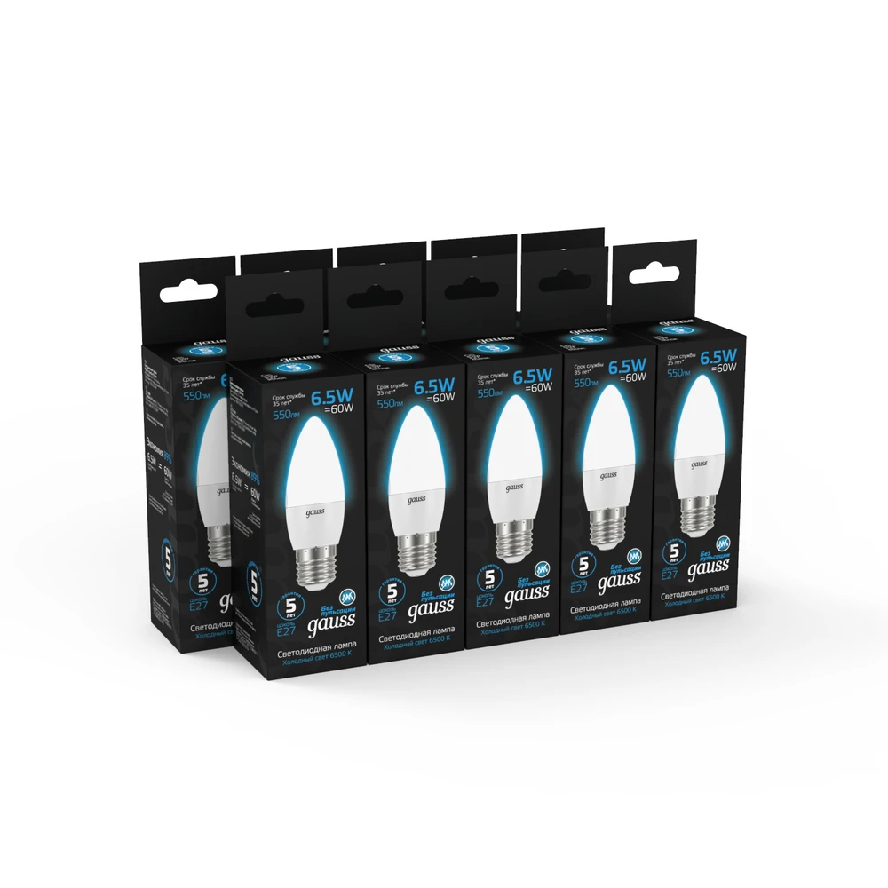 Светодиодная лампа Gauss Свеча 6,5W 550Lm 6500K E27 103102307