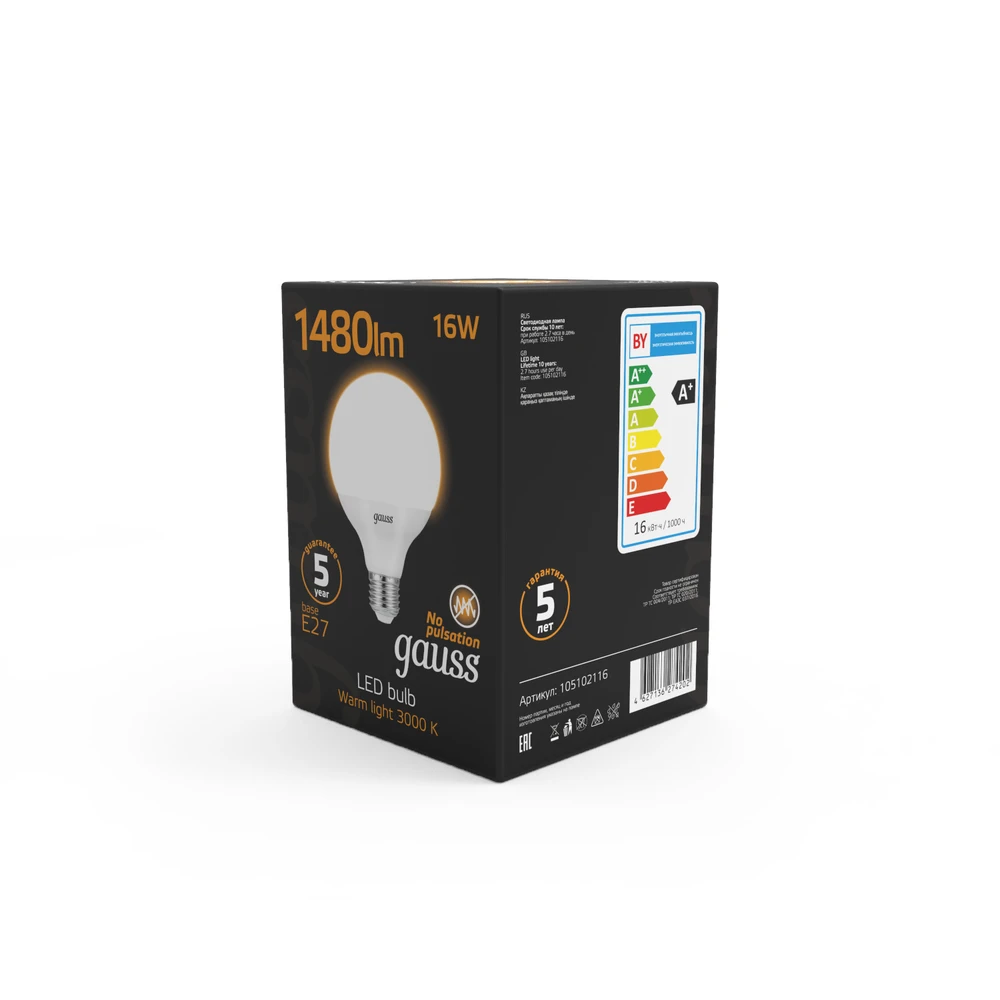 Светодиодная лампа Gauss G95 16W 1480Lm 3000K E27 105102116