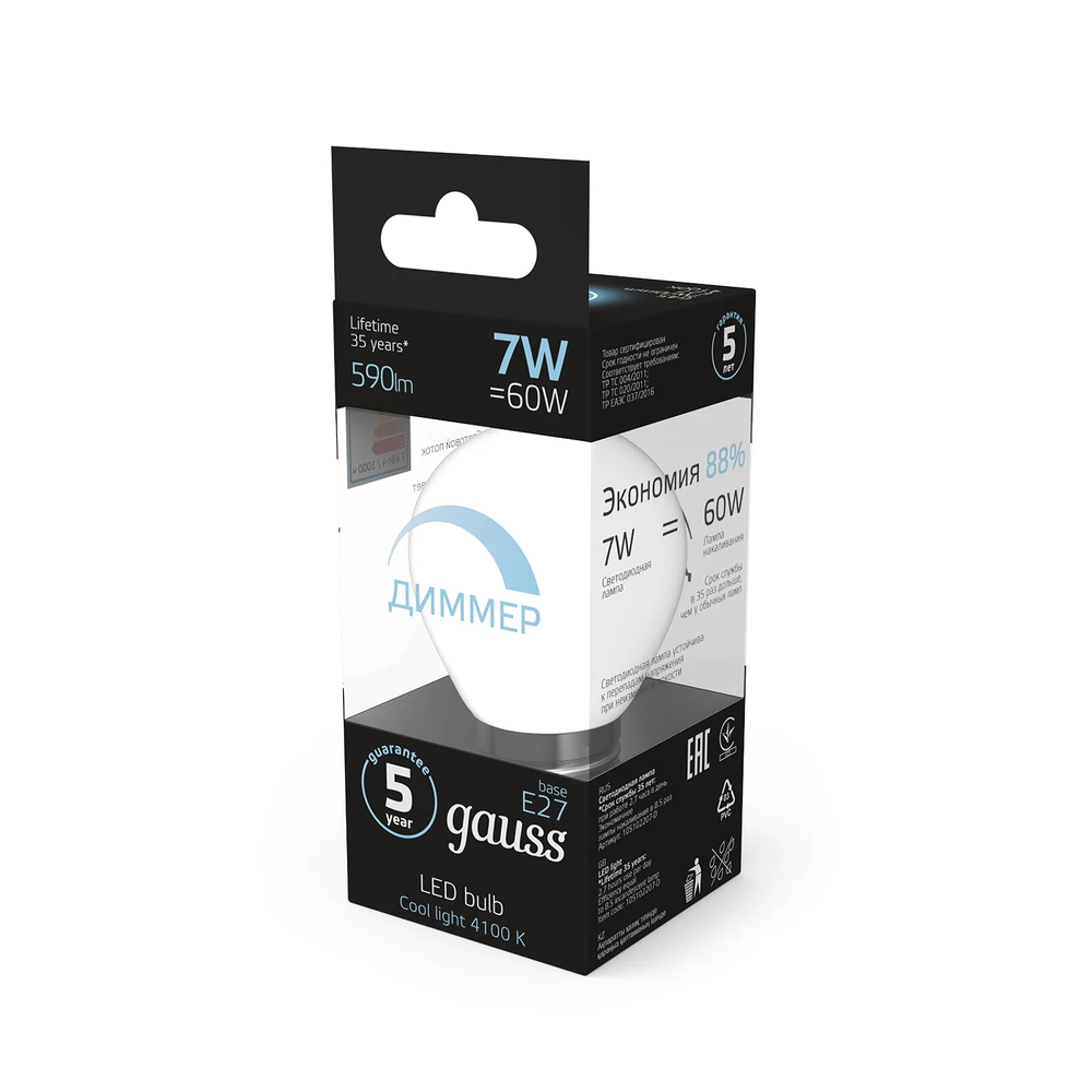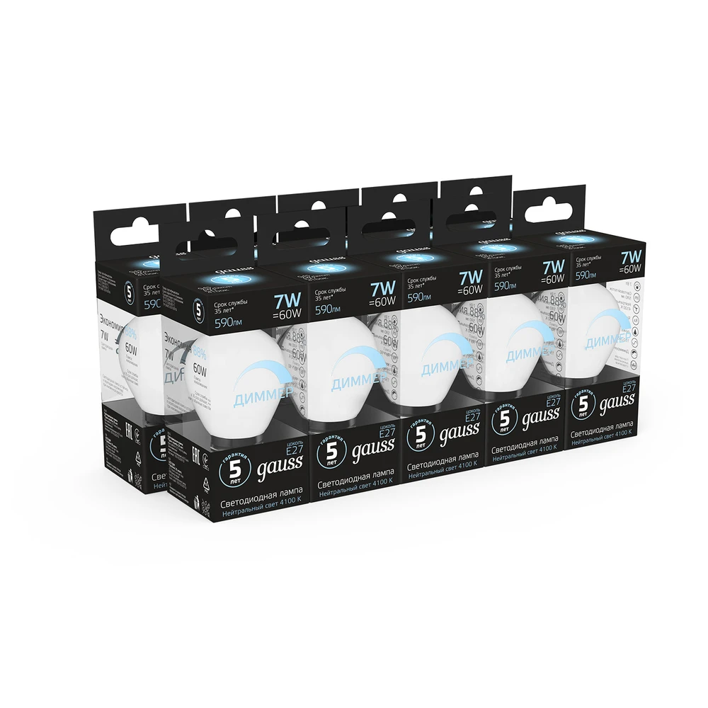 Светодиодная лампа Gauss Шар 7W 590Lm 4100K E27 105102207-D