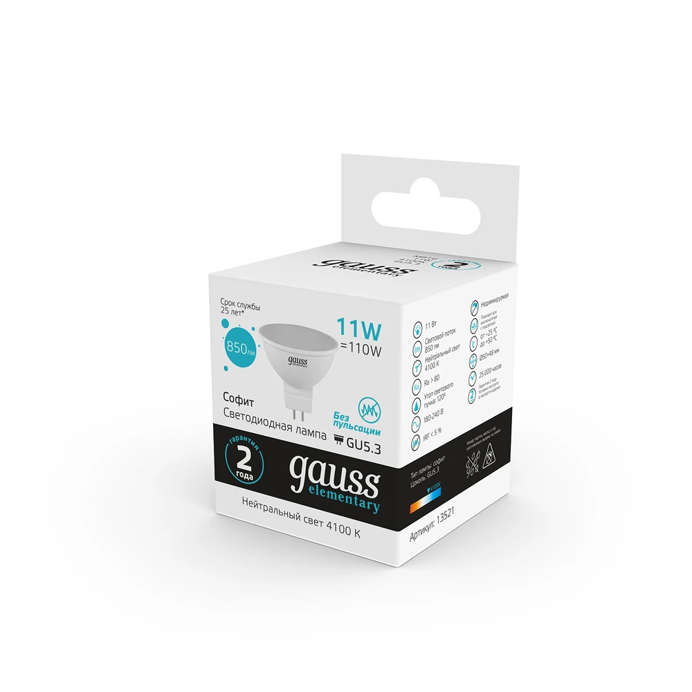 Светодиодная лампа Gauss Софит 11W 850Lm 4100K GU5.3 13521