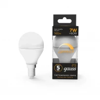 Светодиодная лампа Gauss Шар 7W 560Lm 3000K E14 105101107-D