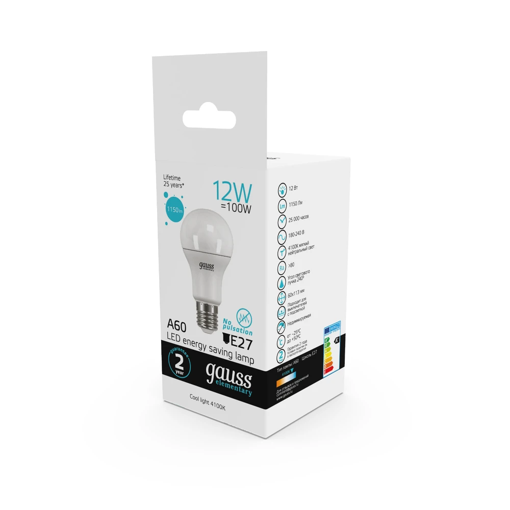 Светодиодная лампа Gauss A60 12W 1150Lm 4100K E27 23222