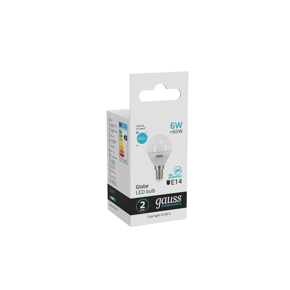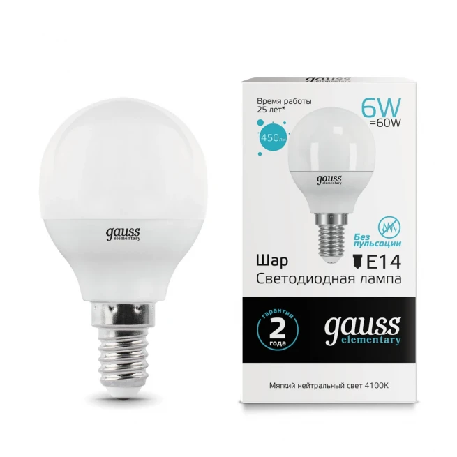 Светодиодная лампа Gauss Шар 6W 450Lm 4100K E14 53126